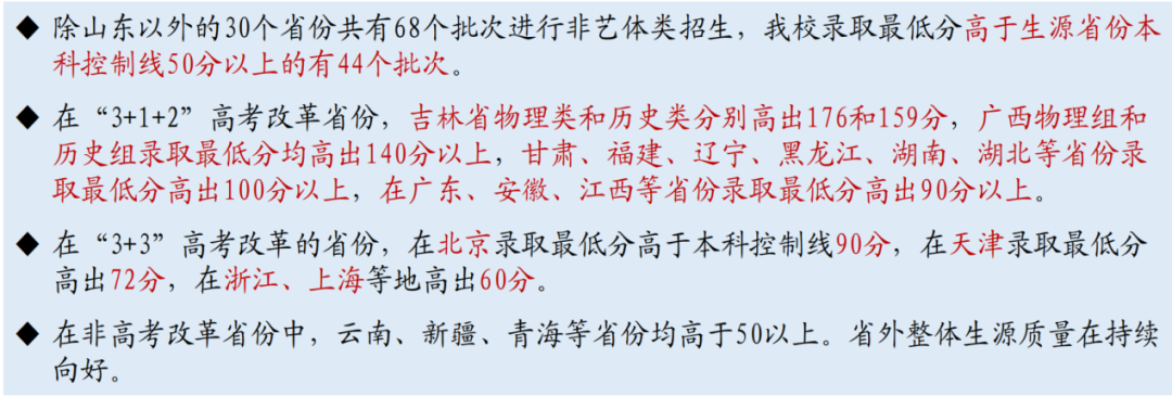 2.通过夏季高考普通类招生的40个专业(类)录取最低位次位居省属高校前三,占学校招生总数的72.7%;