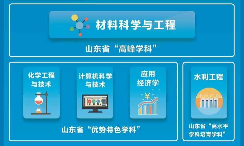 学校建有山东省高水平学科5个(其中,高峰学科1个、优势特色学科3个、高水平培育学科1个),省一流建设学科4个、省一流培育建设学科1个,省重点学科14个;9个学科进入ESI全球排名前1%,9个学科进入软科世界一流学科排行榜。